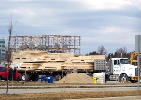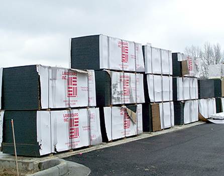 to become part of the construction project is stored as it awaits being taken